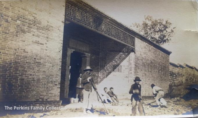 "Entrance at 'Gate House' the Dr. Perkins' hospital. There is a tablet on each side that has some texts (in Chinese) relating to the 'Water of Life.'