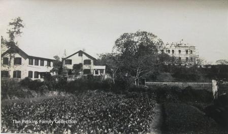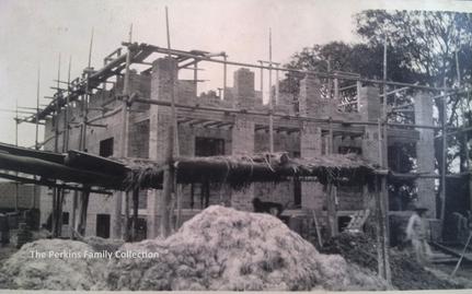 "Left to right:evangelist's house,Chinese physician's house,the new WLH. First Church's well house under the tree. in the progress of construction {OC}"